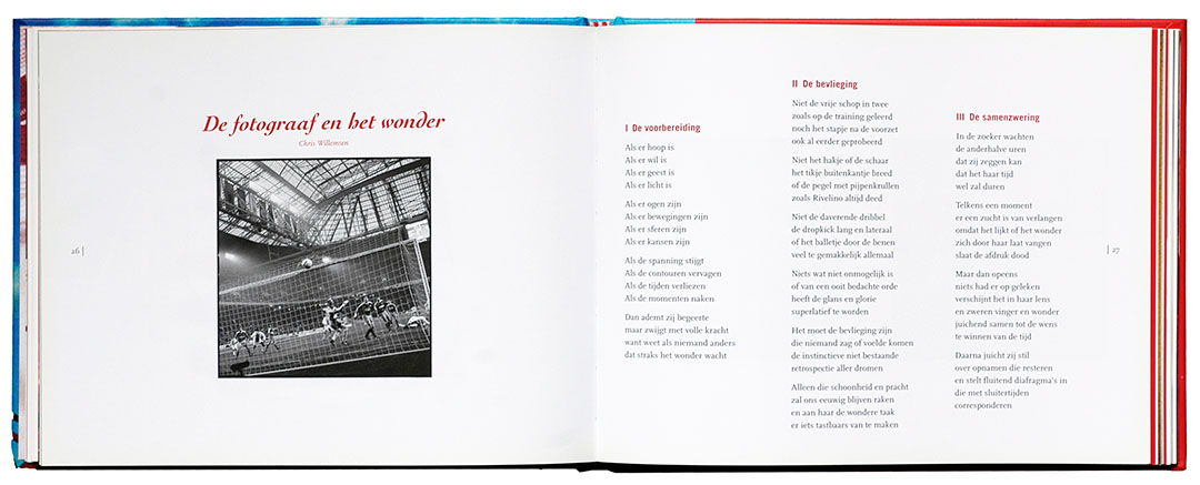 In 2001 heb ik het boek ‘In de Catacomben – over Ajaxliefde en Jongensdromen’ uitgegeven. In een combinatie van tekst, vormgeving en beeld gaat het mij om de nostalgie van de miljoenenclub in het oude stadion, de kleine rituelen. Kortom alles wat met het gevoel rondom het voetbal te maken heeft. Lees en bekijk hier meer over de achtergrond.