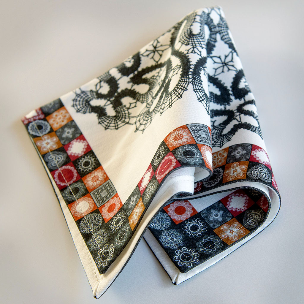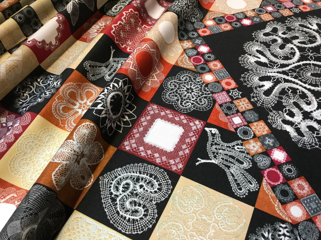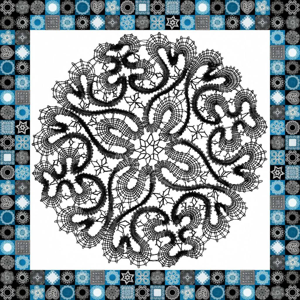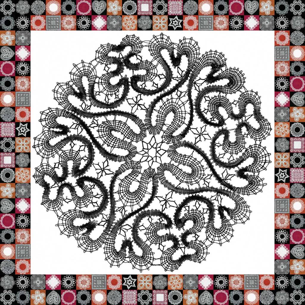 Prachtig boerenbont tafelkleed gebaseerd op de kantkloskleedjes die mijn moeder maakte…