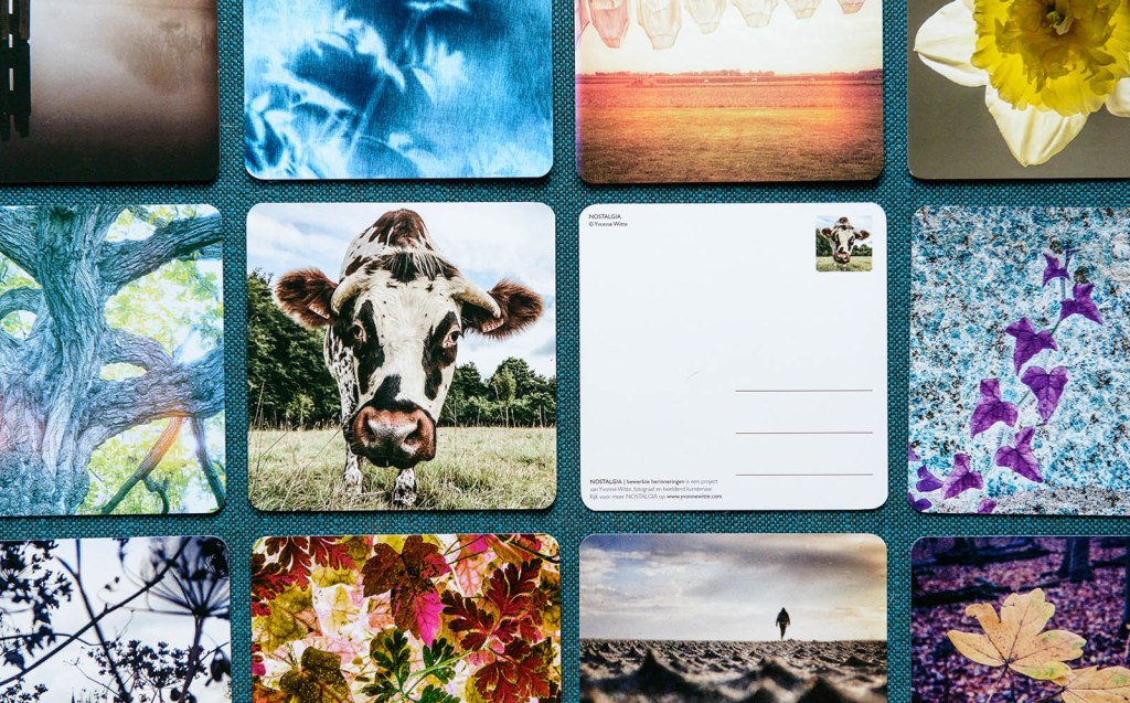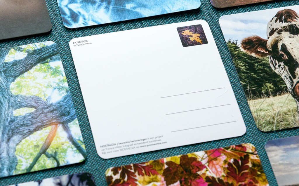 Nostalgia ansichtkaarten, 12,7 x 12,7 cm op 350 grs kaart.