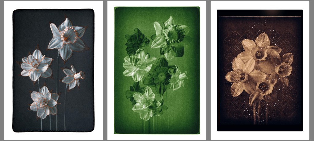 Ook print ik de foto’s op eco-fluweel of eco-canvas, waarna ik ze bewerk met inkt, borduur en naaigaren. Zie oa hier.